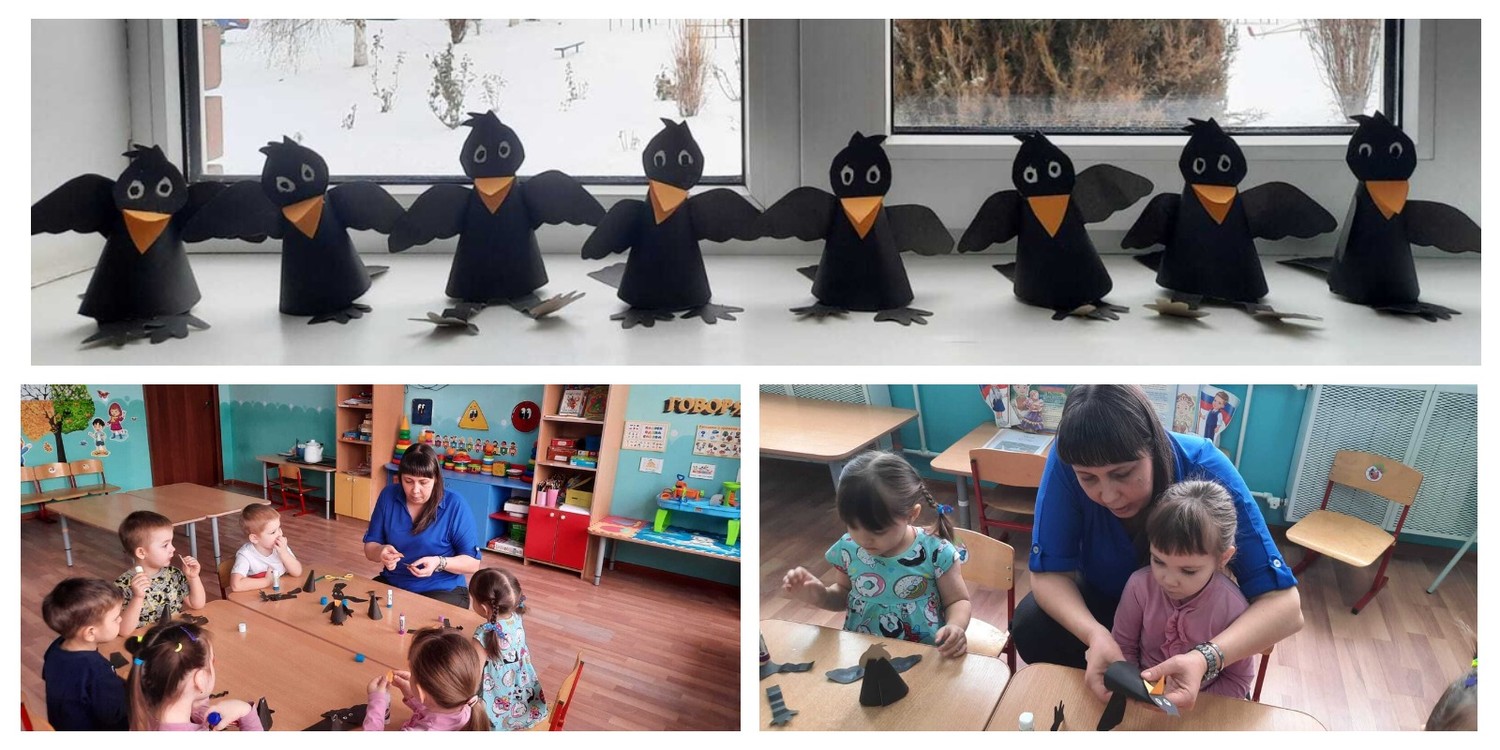 В младшей группе прошло занятие, аппликация «Ворона. Зимующие птицы». В ходе продуктивной деятельности дети закрепили ранее полученные знания о птице, которая зимует в наших краях, а также узнали некоторые интересные факты о вороне.