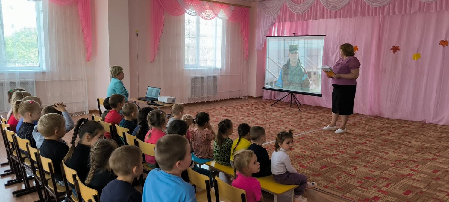 19 сентября 2025г. в нашем детском саду прошел Патриотический час «Нашей Родины сыны - нынче прославляются!». Библиотекарь рассказала, когда и почему началась Специальная военная операция на Украине, о мужестве и героизме военнослужащих, участвующих в ней. Далее рассказ сопровождался показом слайдов о наших погибших героях - земляках Шевцове Е.А., Коряко А.В., Филлипове Е.А, Смолякове Е., Н., Каралкине А.С., Типалове В. Н., которые проявляя примеры мужества, смелости и отваги, освобождали территории Донецкой, Луганской народных республик и Запорожской области. Минутой молчания почтили память всех героев, которые погибли при исполнения воинского долга в ходе Специальной военной операции на Украине. Их подвиги навсегда останутся в наших сердцах.